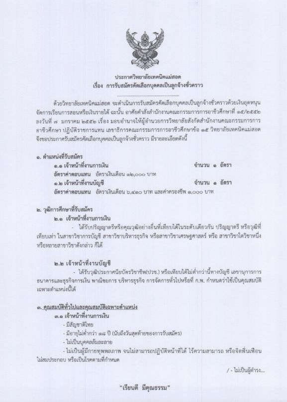 การรับสมัครคัดเลือกบุคคลเป็นลูกจ้างชั่วคราว