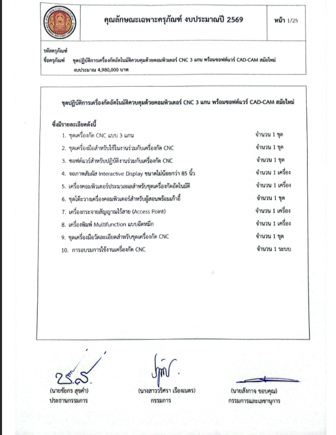 สเปคชุดปฏิบัติการเครื่องกัดอัตโนมัติ CNC 3
