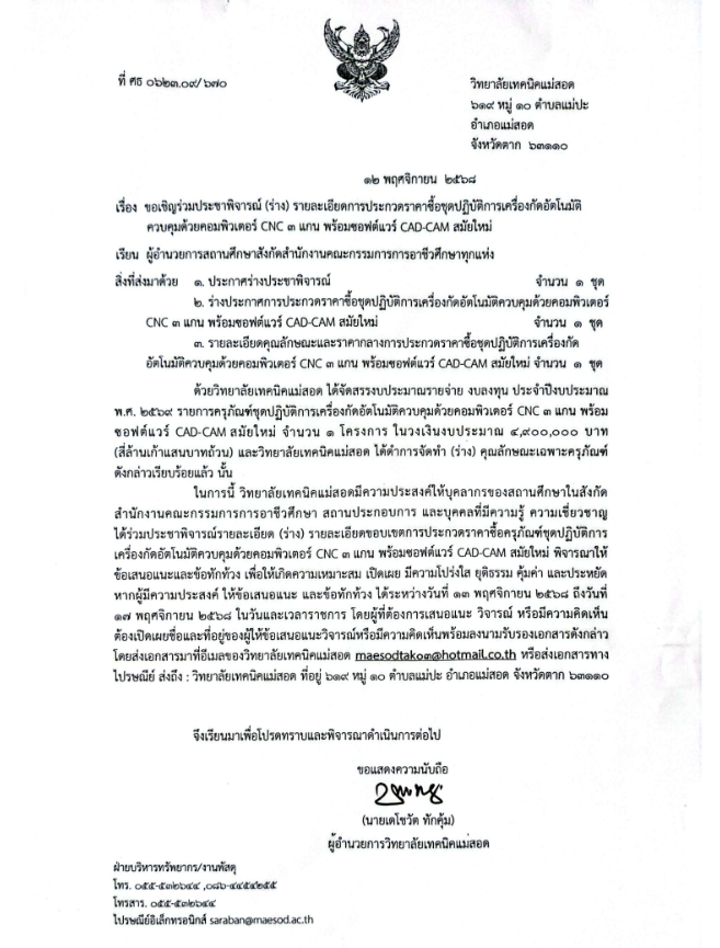 ประกาศ ประชาพิจารณ์ ร่าง เครื่องกัดอัตโนมัติ